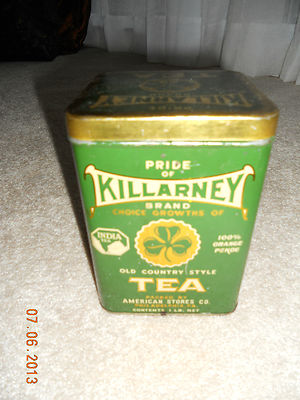 Title (ebay affiliate link): TEA CAN TIN - KILLARNEY COLLECTIBLE TEA CAN TIN ANTIQUE/VINTAGE