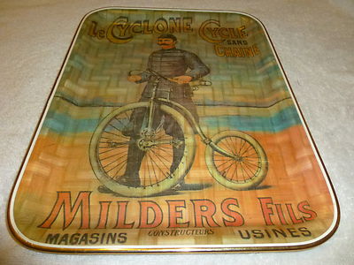 TRAY BAMBOO WOODEN TRAY ADVERTISING VINTAGE BICYCLE LE CYCLONE CYCLE MILDERS