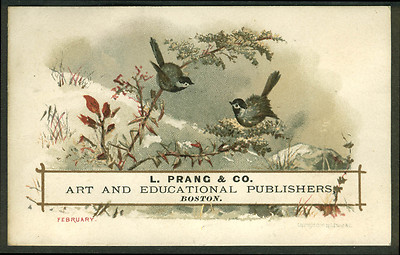 Title (ebay affiliate link): L Prang Art & Educational Publisher Boston trade card 1880s winter birds