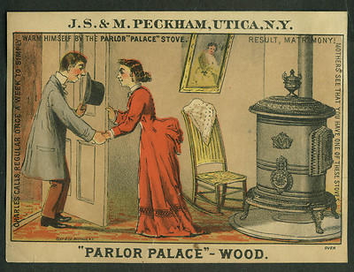 Title (ebay affiliate link): Parlor Palace Wood Stove trade card J S & M Peckham Utica NY 1880s