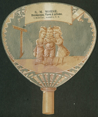 S M Morse Steroscopes Views & Albums Nashua NH fan-shaped trade card 1880s