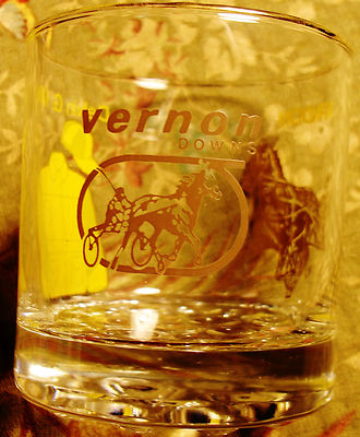 VTG VERNON DOWNS DELVIN G MILLER ARNDON HORSE BUGGY HARNESS COCKTAIL GLASS