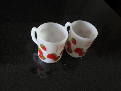 Title (ebay affiliate link): 2 VTG Anchor Hocking Ware White Milk Glass Strawberry Shortcake Coffee Mug Cup
