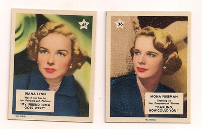Title (ebay affiliate link): 1952 MOVIESTAR CARDS MONA FREEMAN AND DIANA LYNN GOOD SHAPE