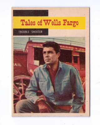 Title (ebay affiliate link): 1958 TOPPS TV WESTERN TALES OF WELLS FARGO #58 TROUBLE SHOOTER EXNM