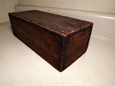 Title (ebay affiliate link): Primitive Antique Slide Top Precision Tool Finger Joint Wood Box c1920s