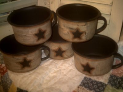 Primitive Country Rustic Enamel Coffee Cups Shelf Sitters Farm house Decor