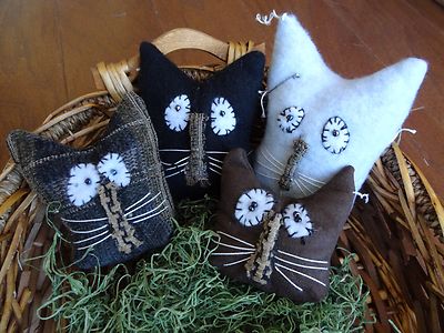 Title (ebay affiliate link): PRIMITIVE CAT KITTY BOWL FILLERS FALL HALLOWEEN HANDMADE ORNIES