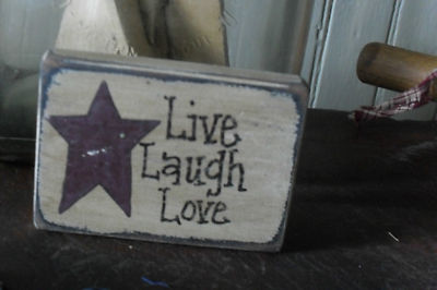 Title (ebay affiliate link): PRiMiTiVe WoOdEn BLoCk ShELf SiTtErS (LiVe LoVe LaUgH)