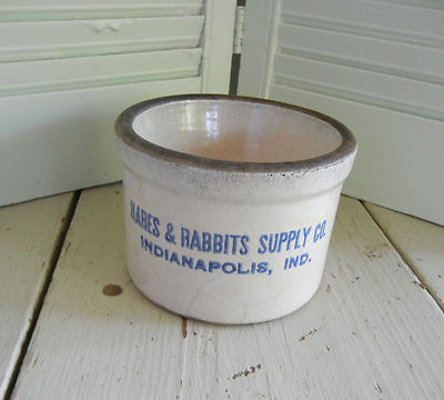 Title (ebay affiliate link): Vintage Stoneware Advertising Rabbit Food or Water bowl Hares & Rabbit Supply Co