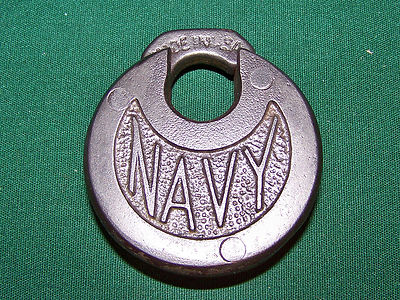 Antique NAVY Turnkey Pancake Padlock & Key. E.T. Fraim Lock Co. Lancaster, PA