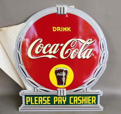 Title (ebay affiliate link): Coca Cola PLEASE PAY CASHIER Sign With Glass MINT Unused Retro