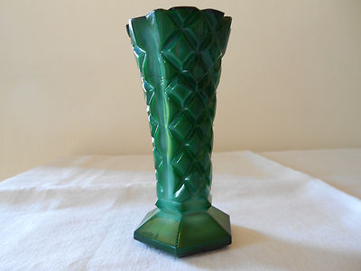 Beautiful Czech Art Deco Malachite Jade Glass Vase