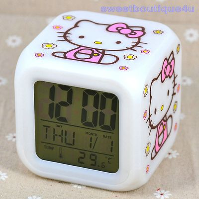 Title (ebay affiliate link): Hellokitty Glowing LED 7 colors change Digital alarm Thermometer Calendar Clock