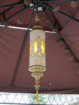 Vtg RETRO Mid Century MOD Cylinder Swag brassHanging AMBER Lamp Hollywood light