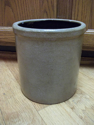 Antique Stoneware Crock brown glaze 7 3/4" tall 7 1/4" wide