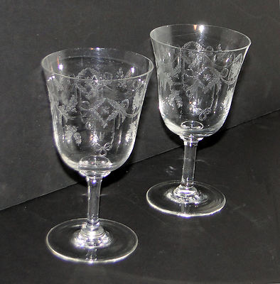 Set of 2 ETCHED DEP or EAPG WINE GOBLETS with Bows, Garlands,Crossed Branches