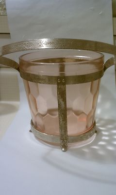 Title (ebay affiliate link): Pink Depression Glass HEX OPTIC ICE BUCKET Honeycomb w/ Metal Handle Jeannette