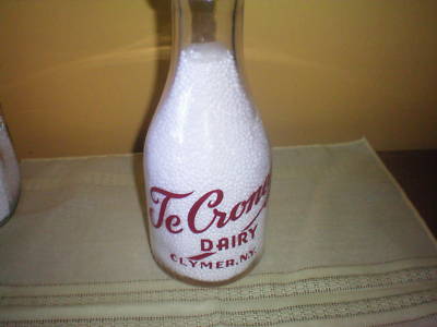 Glass milk bottle Te Croney Dairy Clymer N Y