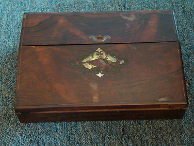 LONDON TOULMIN & GALE ROSEWOOD LAPDESK CIRCA 1850 WITH INK WELL ~NEEDS REPAIR~