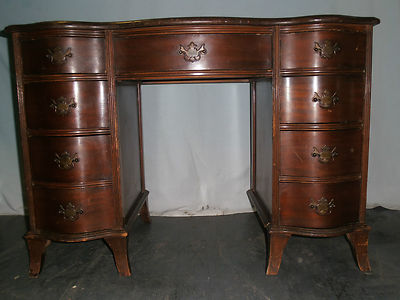 Title (ebay affiliate link): VINTAGE WOOD TWIN PEDESTAL KNEEHOLE WRITING COMPUTER DESK VANITY MAKE UP DRESSER