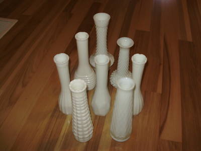 MILK GLASS BUD FLOWER VASES COLLECTION BEAUTIFUL LOT!!
