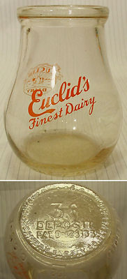 Old Euclid Dairy Co Unusual Pint Pyro Milk Bottle