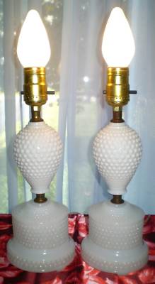 VINTAGE PAIR OF HOBNAIL MILK GLASS BASE BOUDOIR LAMPS