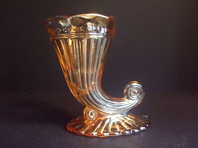Title (ebay affiliate link): Fluted Satin Carnival Glass Cornucopia Marigold Color by Jeanette Bud Vase