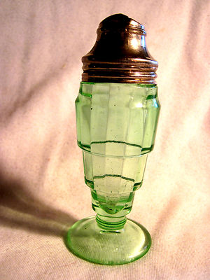 Title (ebay affiliate link): VINTAGE GREEN DEPRESSION SALT OR PEPPER SHAKER BLOCK OPTIC? OR MODERN TONE?
