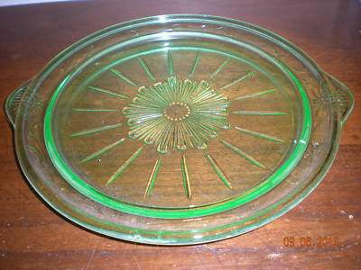 GREEN DEPRESSION GLASS CAKE PLATE REAL PRETTY