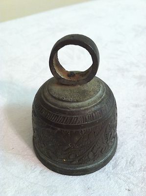 Title (ebay affiliate link): Vintage Antique Primitive-Look Engraved Brass? 2 1/4" Tall Bell, Great Ringtone