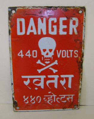 Title (ebay affiliate link): Original Vintage Danger 440 Volts Porcelain Enamel Sign 4"