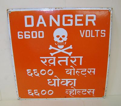 Title (ebay affiliate link): Original Vintage Large 12" Danger 6600 Volts Porcelain Enamel Sign