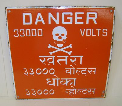 Title (ebay affiliate link): Original Vintage Large 12" Danger 3300 Volts Porcelain Enamel Sign