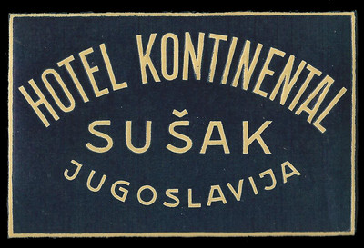 Hotel Kontinental SUSAK Jugoslavia (Croatia) vintage luggage label