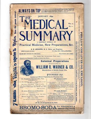 1894 MEDICAL SUMMARY Journal MEDICAL MARIJUANA OPIUM HABIT& ALCOHOLISM Great Ads