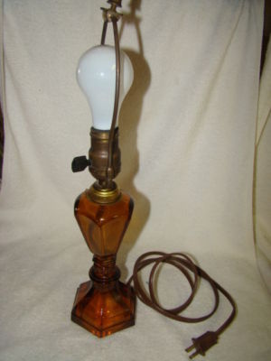 VINTAGE AMBER DEPRESSION GLASS TABLE DRESSER LAMP