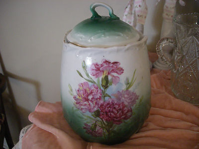 Title (ebay affiliate link): PRETTY VINTAGE HNDPAINTED BISQUIT JAR....MUST SEE..GREAT COLORS..PEONIES