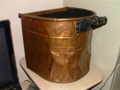 Title (ebay affiliate link): ANTIQUE COPPER FOLK ART WASH TUB W/ HANDLE CONVERTED INTO MAGAZINE/STORAGE BIN