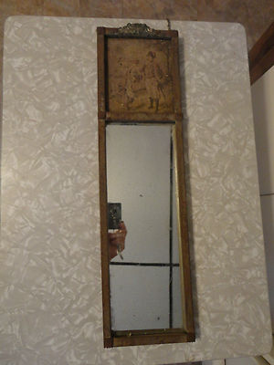 ANTIQUE METAL FRAME MIRROR WITH TAPESTRY PICTURE NEEDLEPOINT