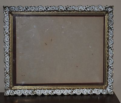 Beautiful Antique Vintage Gold And White 11x14 Frame Floral Design
