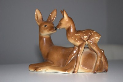 Deer mom and fawn Hungarian porcelain figurine numbered