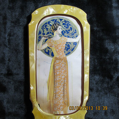 9 1/2 x 4 1/2" yellow/W brown pearl celluloid picture frame art deco