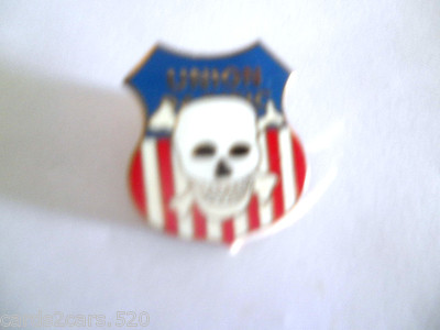 Vintage Union Pacific Hat Pin Skull & Cross Bones Red White & Blue 1 inch