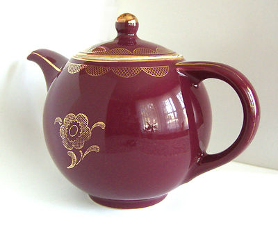 Antique Vintage Hall Globe Tea Pot - 6 cup - Maroon and Gold - 1937