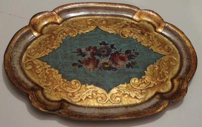 VINTAGE ITALIAN POLYCHROME GOLD GILT TOLEWARE TRAY