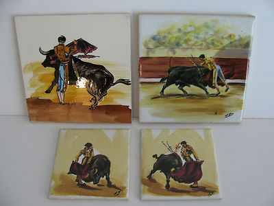 ( 4 ) Spanish hand painted ceramic tiles Onda spana ..xx rico... bullfighting