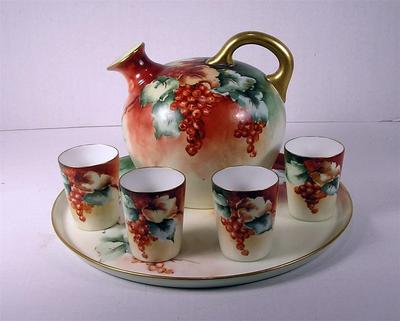 Rare Porcelain Whiskey Jug/Decanter Set Hand Painted T&V Limoges