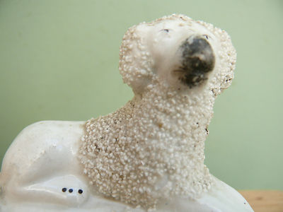 SUPERB Mid 19thc STAFFORDSHIRE FIGURINE OF POODLE IN LAYING POSE